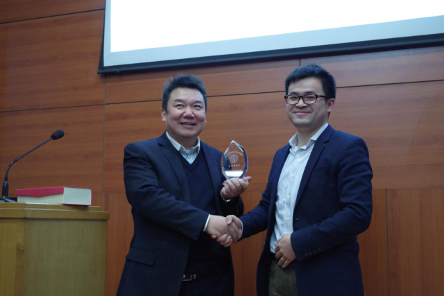 两位嘉宾的讲座深入浅出,认真解答了现场同学的提问,同学们收获良多。讲座的最后,与会嘉宾与学生在开物馆楼前合影。