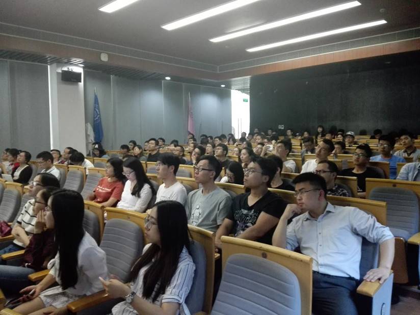 讲座的内容十分充足,同学们也听得投入而认真。在近两个小时的讲座中,整个会议厅座无虚席,同学们也都认真聆听陈教授的分析。在之后的提问环节中,大家都积极提问,陈教授也一一详细解答了同学们的疑问。