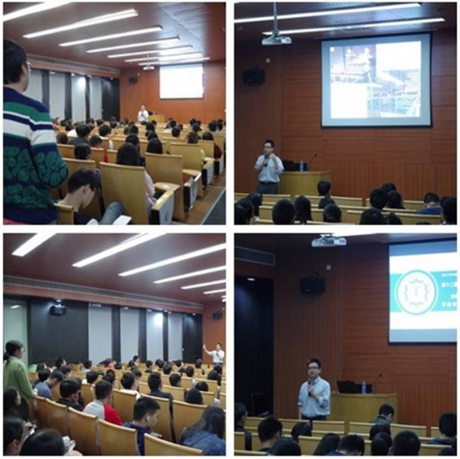 讲座中,王良柱教授向同学们介绍了加拿大康考迪亚大学零能耗建筑中心的概况,并从零能耗中心六位教授的研究方向,即太阳能、风洞、自动控制等方面详细论述了中心研究的具体方向及意义。王良柱教授目前的主要研究方向是高层建筑防火安全、建筑通风和热管理以及CFD模拟仿真。通过一段实时监测和预测烟雾和火焰传播的视频,王教授生动形象地向我们展示了目前项目的重大意义;随后,他从项目入手,介绍了加拿大某段河底隧道用可再生能源,太阳能农场融冰等实例,并介绍了零能耗中心正在筹建的实验室。
