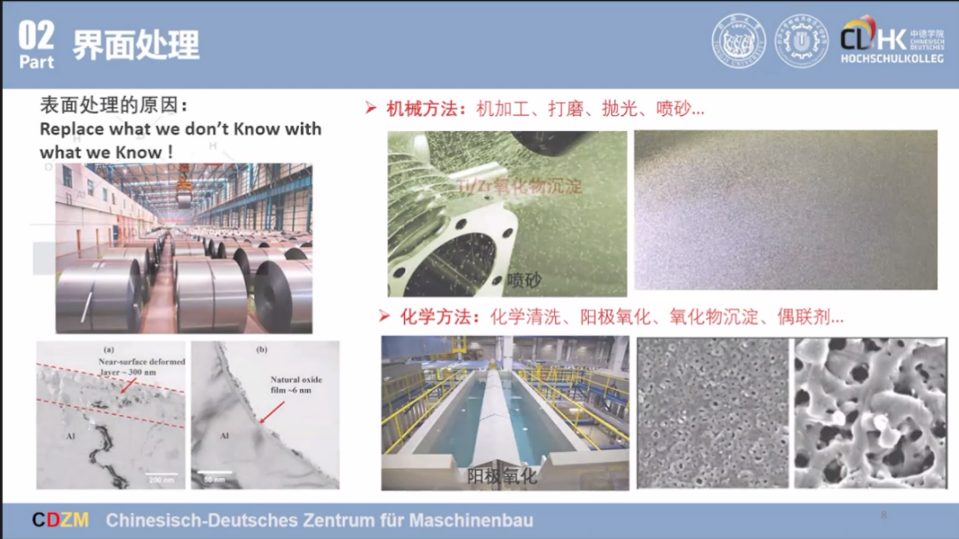 之后,孙老师讲述了界面处理的原因和表面处理的方法,主要是机械方法、化学方法和能量方法。其中,能量方法又分为激光和等离子两种方法。紧接着老师根据案例详细讲述了表面处理的具体步骤。最后,老师又讲述了界面的力学行为并回答同学们的问题。