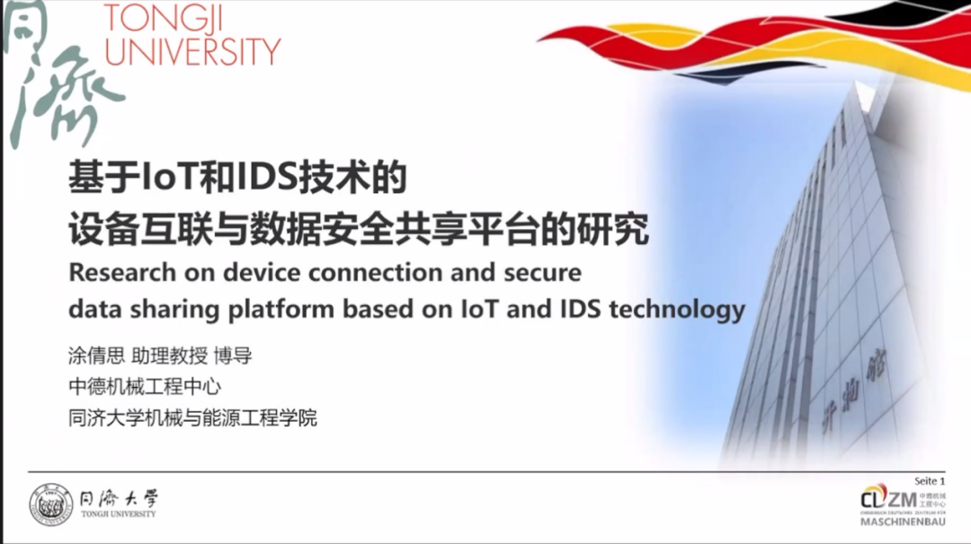 第三个主题的主讲人为涂倩思,博士毕业于卡尔斯鲁厄理工学院。主要研究领域为碳排放与数据科学(数字空间与虚实融合)。报告的题目为《基于IoT和IDS技术的设备互联与数据安全共享平台的研究》。