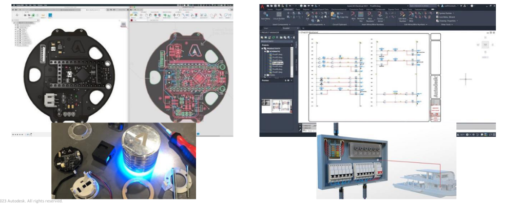 接着陈经理对Fusion 360 Electronics进行了详细介绍,Fusion 360 Electronics是一个集合“Schematic design、PCB layout & routing、MCAD/ECAD integration、Thermal & Analog performance analysis、PCB manufacturing”的平台,具有“Collaborative Multidisciplinary Design”、“Integrated Mechanical & Electronics Workflows”、“Automated MFG Documentation”、“Signal Integrity Extension”、“Electronics Cooling”的应用优势。