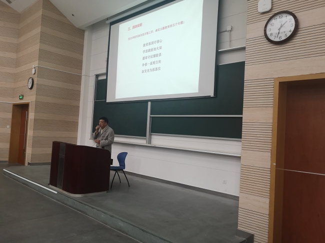 党校原副校长范灼华副教授,作全面从严治党专题讲座。院党委书记于航等学院党政领导和师生党员约250人参加了本次讲座,讲座由院党委副书记宋木生主持。