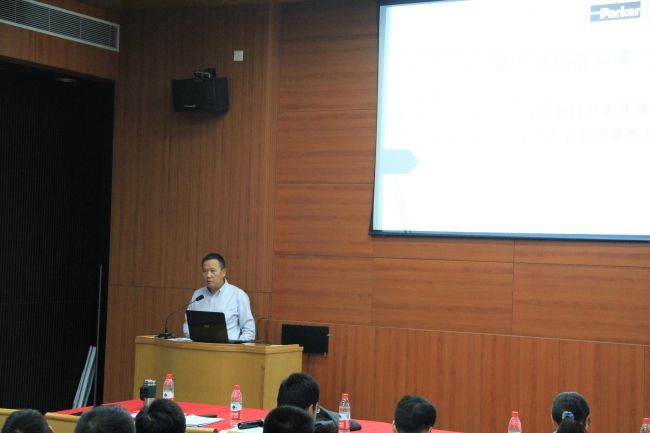 第四届派克汉尼汾液压创新设计大赛决赛暨派克汉尼汾创新设计奖学金颁奖典礼在我院A101报告厅成功举行。派克汉尼汾工业液压技术有限公司总经理陆慧彬先生、业务开发主管王战先生、设计工程师刘建涛先生、大中华区招聘经理张祎达女士,我院朱玉田教授、吴仁智副教授、党委副书记李红等出席了本次活动。李红老师、陆慧彬先生分别为大赛致辞。