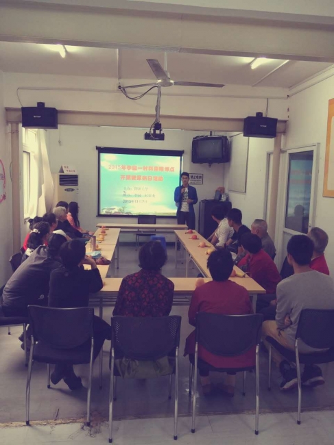 11月7日下午,我院热传递志愿者中队成员前往李园一村开展以“健康生活与糖尿病”为主题的志愿服务活动。我院大二、大三的九名志愿者负责活动的组织和开展,与李园一村的十二名老人共聚一堂。