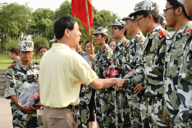 校院领导的慰问极大的鼓舞了13级学生们的斗志,在当天进行的军训歌咏比赛中,由我院与艺术与传媒学院组成的六营歌声嘹亮,唱出了军人的胸襟,唱出了军人的气魄,唱出了同济学子的精神!相信在最后的几天训练中,我院学生定将此精神保持下去!