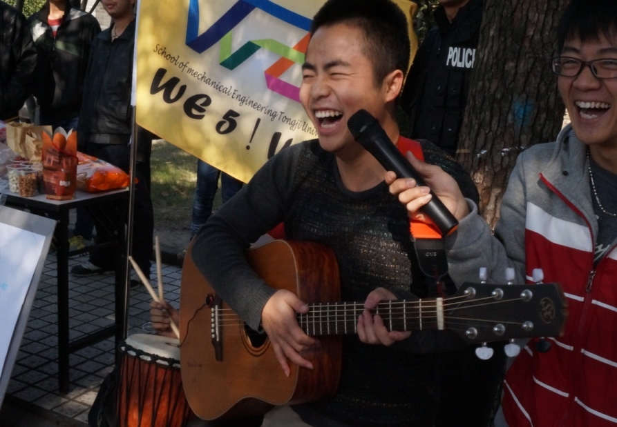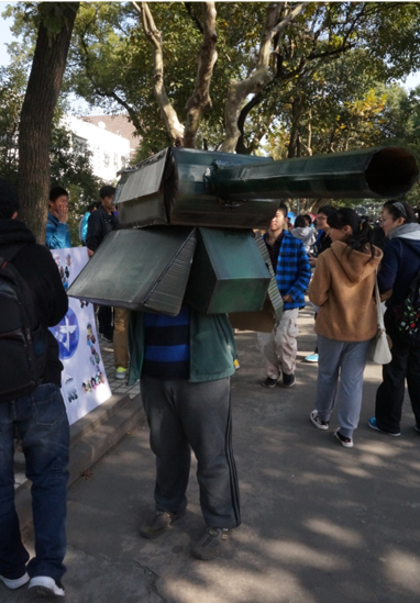 此次活动展示了我院13级新生十一个班级的风采。各班经过近两个月的精心准备,各出奇招。部分班级邀请外国友人进行吉他弹唱,现场还跳起了欢快的兔子舞、街舞斗牛……精彩纷呈,引得路人纷纷驻足,欣赏赞叹。除了才艺,更有手工制品夺人眼球。10班自制的坦克有趣环保,8班女生巧手所折的纸玫瑰逼真精致,更有漂亮的花式气球,现场派送给路人,可谓惊喜连连。