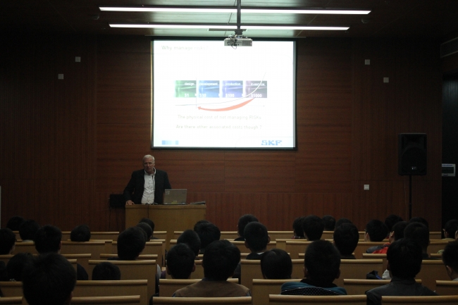 14日下午3:10~5:00,主讲人Juergen Bruhn质量总监毕业于RWTH Aachen大学(德国亚琛工业大学),1987年进入SKF工作,曾任SKF测量系统质量与发展研发经理,专用汽车产品质量经理兼职。讲座主题为 “Launch of New products into Series Production-Automotive APQP”。张为民教授出席论坛,在论坛中,Juergen Bruhn不仅介绍了许多有关汽车行业中产品质量先期策划的知识,而且还与同学们进行亲切互动。