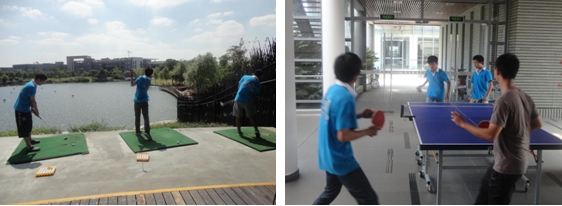 健康万步走活动结束后,我院嘉定校区“体育日”开展了高尔夫球场体验和畅打活动,D楼一层的乒乓球单打和双打的友谊赛和挑战赛,开物馆一楼大厅的棋类娱乐,羽毛球单打和双打及高手对决赛。嘉定校区篮球赛和足球赛成为了当天活动的压轴大戏。本着“友谊第一、比赛第二”的原则,篮球场上展开了正规的对决赛,院队同学们为全体同学展现了一场精彩的比赛。篮球赛后,同学们还进行了投球赛,更增加了篮球带来的乐趣。足球活动进行了短距离的传球游戏和一场高低年级足球友谊赛,期间还进行了射门的练习。