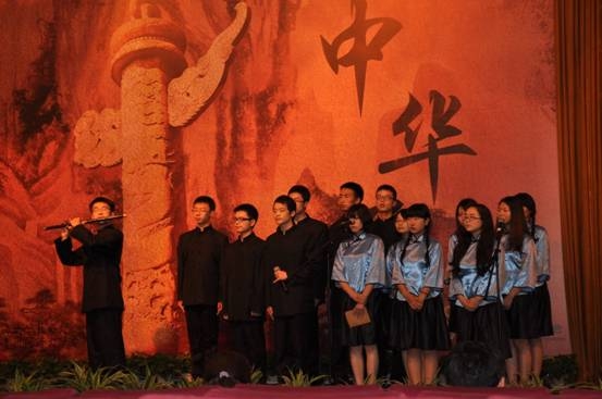 我院学生会先期在全院本科生范围内开展选拔赛,并选送一、二、三等奖同学组成学院代表队。在学校比赛中,我院15名学子组成的代表队“逐梦青年”队伍以对《英雄碑颂》的深情诠释打动了在场所有评委与观众的心。作为本次所有参赛队伍中人数最多的一支,我们在排练时充分运用这一特点,结合了肢体动作、舞台换位、竹笛演奏等多种形式,以一种崭新的面貌出现在大家眼前。我们队伍的同学勇于创新,敢于创新,从而在众多队伍中脱颖而出,一举囊获了二等奖和优秀组织奖两项奖项,取得了可喜的成绩。