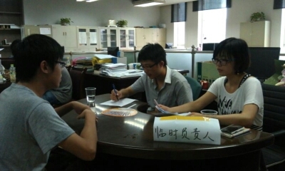 9月9日下午2点,100多名2012级新生参加了招新面试。为做好本次面试工作,各部门负责人做了充分准备。从新生自我认知到问答环节,从情节设计到面试技巧,大家都考虑周全。本次面试坚决秉承绝不敷衍了事、绝不错过一个人才的原则,部门之间相互理解、相互协调的宗旨。通过联合面试,考官会了解到新生的许多情况,可以判断他更适合哪个部门,由考官推荐新生到更能发挥自己特长的部门。面试过程中不断涌现对工作积极、经历丰富、思维活跃的优秀新生,让人眼前一亮。面试在17点30分圆满结束。会后,学生会负责人对此次面试还做了全面总结,并初步商讨录取情况。