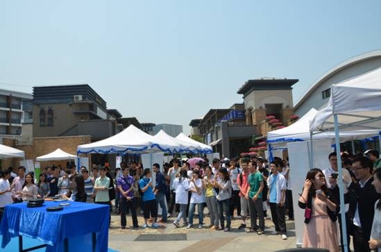 同日,满天星广场的周边的江森公司通过展示自己独特产品的摊位,许多对江森充满向往的学生也踊跃与现场员工热烈交流。