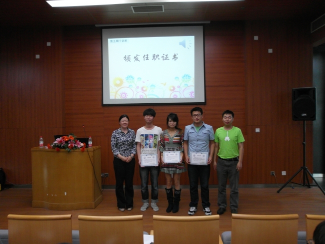 团委研究生会在机械大楼A101成功举办了第五期干训班2011/2012学年年度工作总结大会暨任职证书颁发仪式。院党委副书记陶建兰、团委书记高玉磊出席了本次干训班。同时,来自院研会各个部门的成员约30人参加了此次干训班。
