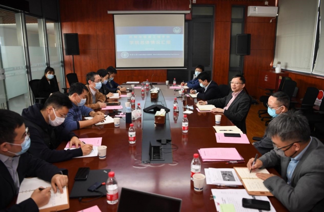 3月9日上午,校党委书记方守恩、常务副书记冯身洪到学院调研。校党委办公室、科研管理部负责人陪同调研,学院党政班子成员参加调研会。