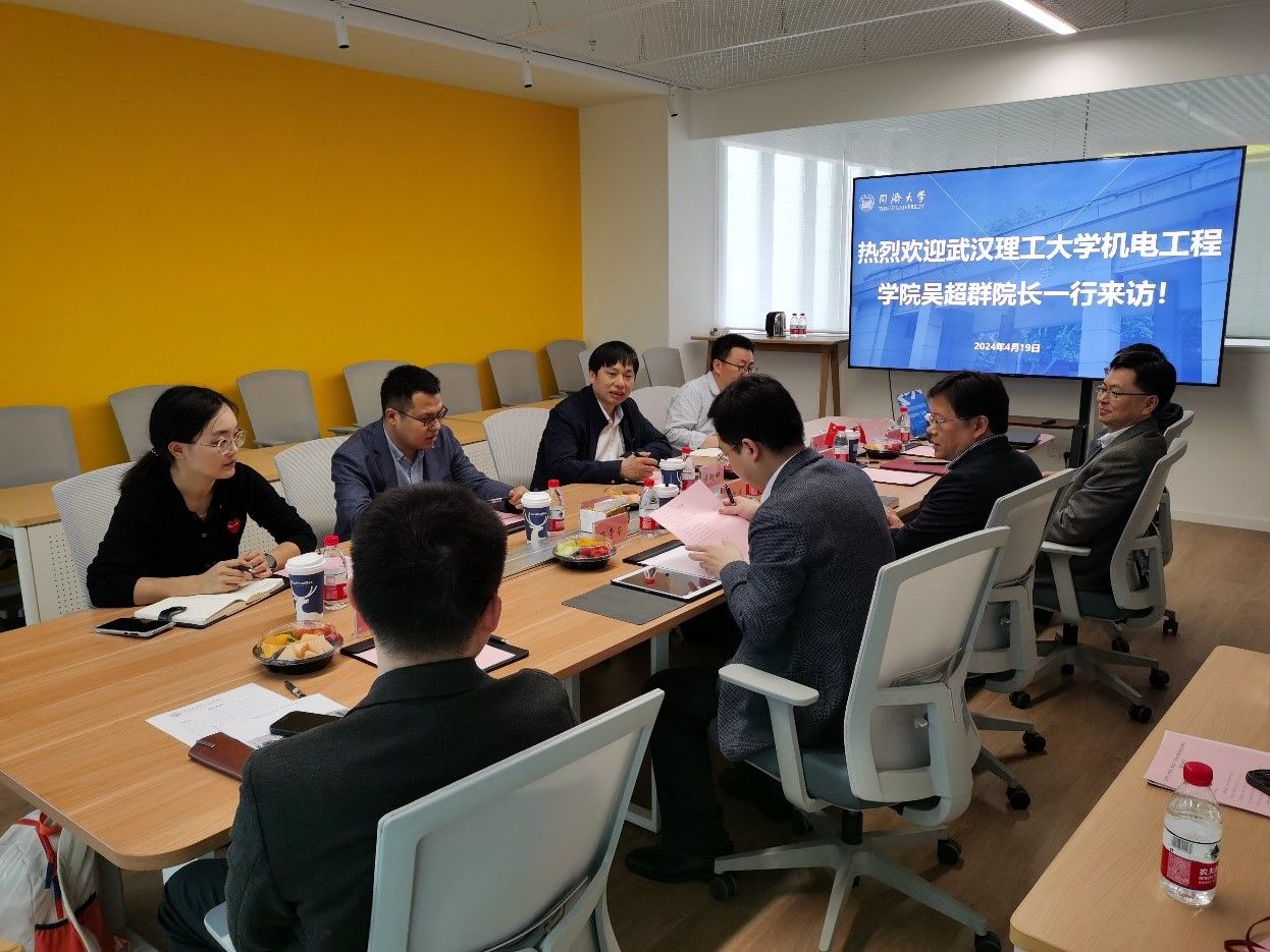 4月19日上午,武汉理工大学机电工程学院院长吴超群、副院长李益兵、机械设计学部党支部书记庄可佳、行政办主任丁晓燕一行来学院调研。学院院长李智军、副院长高乃平、副院长刘广军、党委副书记郑彧豪,中德学院副院长、我院教授汤奇荣参加调研。