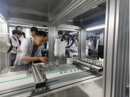 观看了rober master 机器人演示,来到致臻楼参观了菲尼克斯生产线、并联机器人分拣工件、工程实践中心。最后同学们还分组在校图书馆开展了文献检索工作。