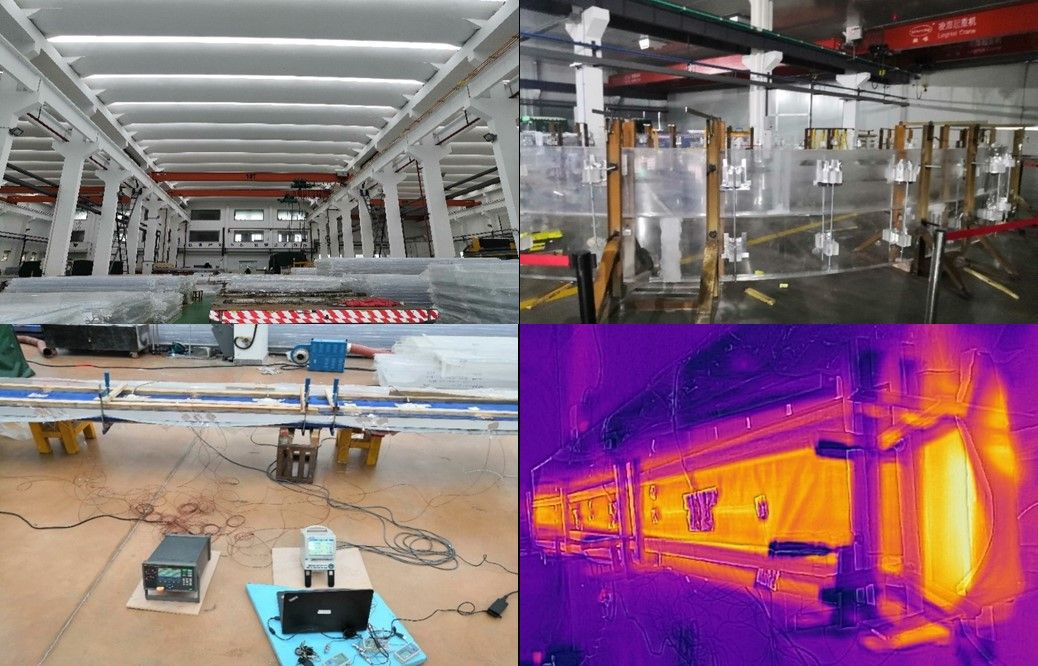 中微子实验室核心设备中微子探测器有机玻璃球的施工过程对环境温度以及洁净度有严格要求。在张旭教授和叶蔚副教授的带领下,课题组成员对有机玻璃退火过程表面温度变化、热流密度、挥发性有机化合物浓度等参数进行了现场测试,并基于测试结果与温度要求、洁净度要求对施工现场通风系统进行了精细化设计,保障了有机玻璃球施工过程的顺利进行。
