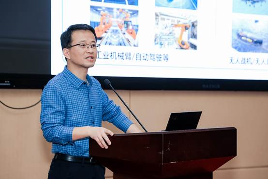 中国科学技术大学自动化系秦家虎教授的报告由夏海生副教授主持,秦家虎教授以《移动机器人运动规划与控制》为题,介绍了在移动机器人运动规划与控制方面的最新研究进展及其在无人机竞速、多机器人协同导航和基于AR的智能人机交互中的应用成果。