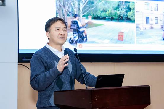 北京科技大学计算机与通信工程学院院长殷绪成教授的报告由田应仲教授主持,殷绪成教授以《智能驾驶轮椅技术及应用展望》为题,介绍了智能导航、目标跟随、手势语音交互等智能驾驶轮椅技术及其多模式交互应用效果。