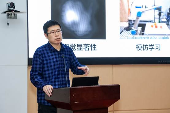中国科学院合肥物质科学研究院智能机械研究所宋博研究员的报告由夏海生副教授主持,宋博研究员以《从类人视觉感知到机器人学习的探索与进展》为题,围绕机器人快速感知、决策控制及一体化基础理论与关键技术,介绍了自己在轻量化快速感知算法和快速泛化决策控制算法以及感存算一体化技术领域的研究进展。