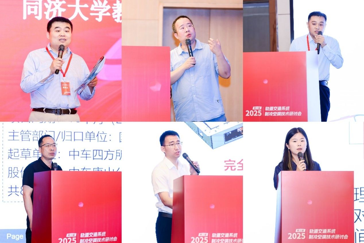 作报告的嘉宾和题目分别是:中车青岛四方车辆研究所有限公司热工空调试验室主任王永镖《国标〈机车车辆空气调节系统第2部分:舒适度〉修订情况介绍》、上海地铁维护保障有限公司车辆分公司技术管理部经理余佑民《列车智能空调系统节能应用》、中车长春轨道客车股份有限公司主任设计师赵金龙《高速动车组空调系统与整车设计匹配技术研究》、佛山市地铁集团有限公司轨道保护执法室主任张立麟《佛山轨道交通2号线全员降本增效、节能降耗研究与思考》、中车株洲电力机车有限公司暖通工程师陈诗文《轨道车辆动力电池热管理系统技术研究与发展需求》。