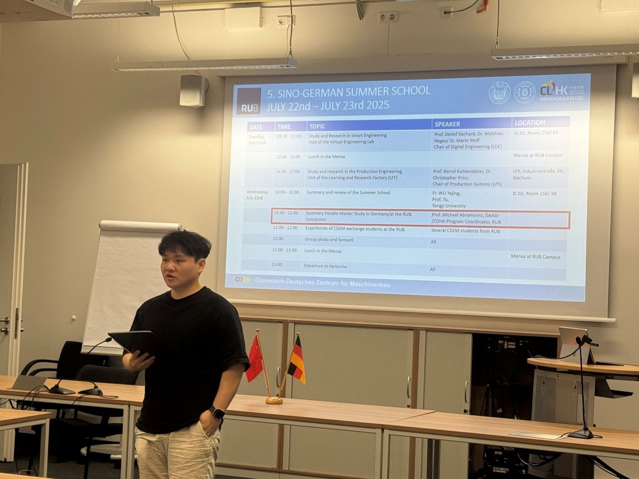 在闭营仪式上,团队成员代表分享本次德国行的心得体会。目前正在波鸿鲁尔大学攻读双学位的暗网禁区