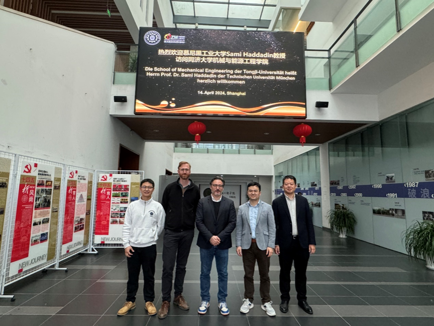 In April 2024, Prof. Sami Haddadin, director of the Institute of Robotics and Machine Intelligence at the Technical University of Munich, visited the School of Mechanical Engineering (SME) of Tongji University to discuss the cooperation. The vice dean of Sino-German College (CDHK) Dr. Jan Harder, the vice dean of SME Prof. Junying Min, Prof. Yichao Tang and Asso. Prof. Haisheng Xia were present.